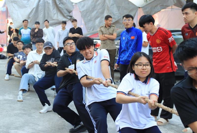 Chiều 28/11, các trò chơi tập thể như kéo co thu hút đông đảo sinh viên tham gia, tạo nên bầu không khí vui tươi, gắn kết. Bên cạnh đó, các gian hàng do các đơn vị, CLB và đại diện sinh viên các khóa tổ chức đã mang đến không gian trải nghiệm trẻ trung, sinh động với nhiều sản phẩm lưu niệm và món ăn hấp dẫn.