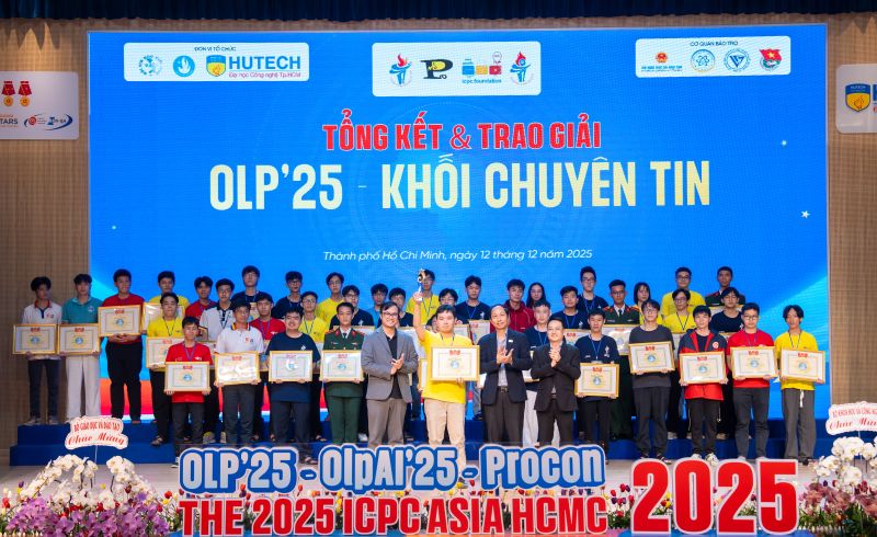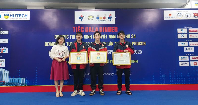 Trong hai ngày 09/12 – 10/12, tại Trường Đại học Công nghệ TP. Hồ Chí Minh (HUTECH), Vòng chung kết Olympic Tin học dành cho khối chuyên Tin lần thứ 34 đã diễn ra sôi nổi với sự tham gia của những đội tuyển sinh viên xuất sắc đến từ nhiều cơ sở đào tạo uy tín trên cả nước. Tham dự sân chơi học thuật đỉnh cao này, đội tuyển sinh viên Khoa Công nghệ thông tin – Học viện Kỹ thuật mật mã đã thi đấu đầy bản lĩnh, trí tuệ và tự tin, xuất sắc giành trọn bộ các giải cao, qua đó khẳng định mạnh mẽ chất lượng đào tạo, uy tín học thuật và vị thế của Học viện trong lĩnh vực Công nghệ thông tin.